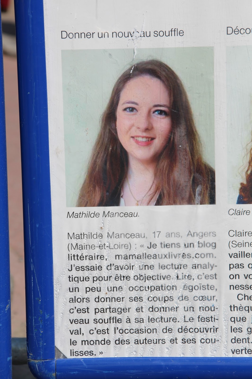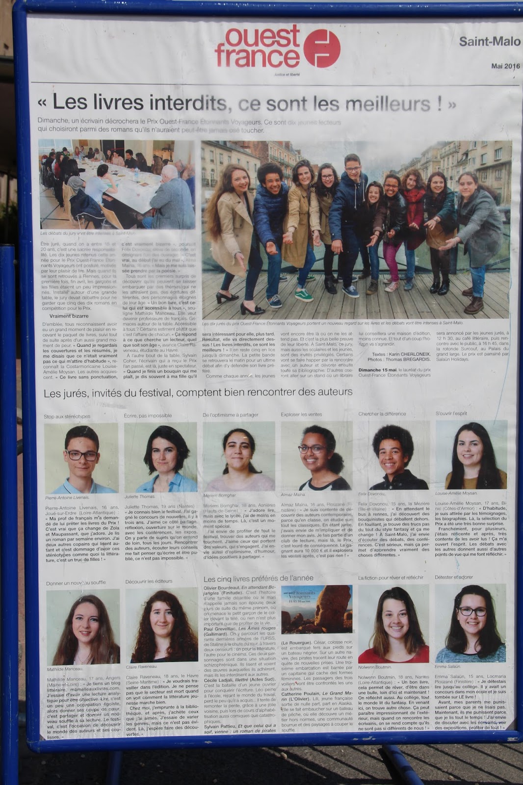L’immense affiche à propos de notre Prix… Pour lire l’article du haut, c’est juste ICI !